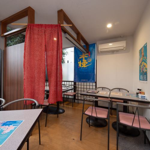 友人やご家族との食事に最適なテーブル席!席と席の間に柔らかな仕切りを設けることで、適度なプライバシーを確保しています。明るい雰囲気の中で、心置きなく会話と食事を堪能する!
